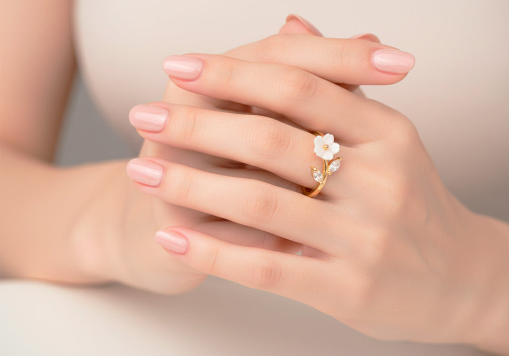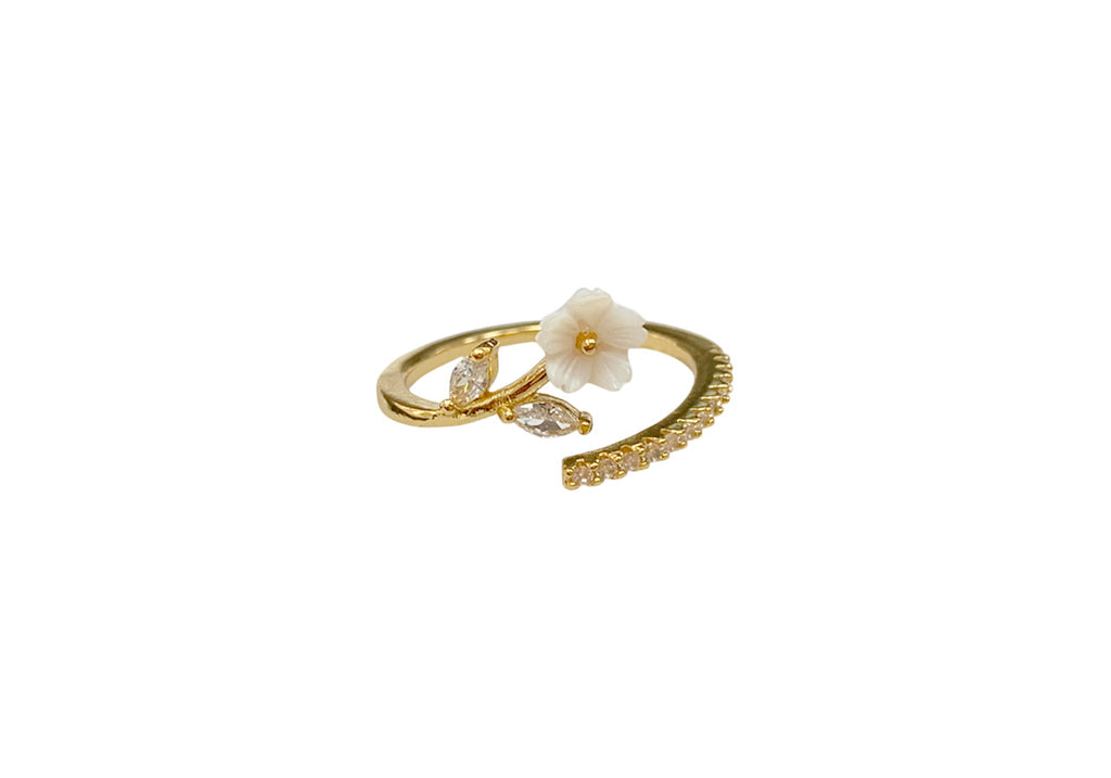 Frau Elegance anillo ajustable con circonia flor blanca dorado