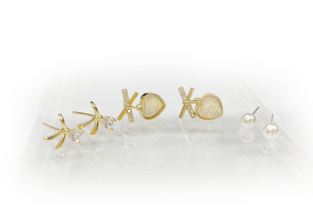 Frau Elegance Aretes de pin de 3 pares corazones madre perla dorado