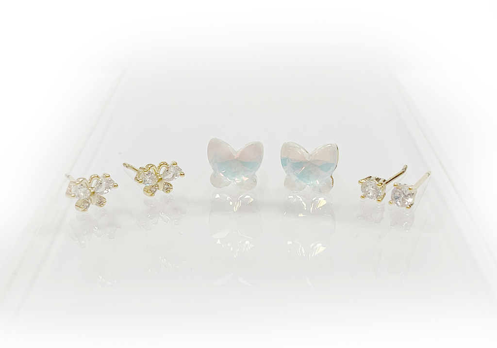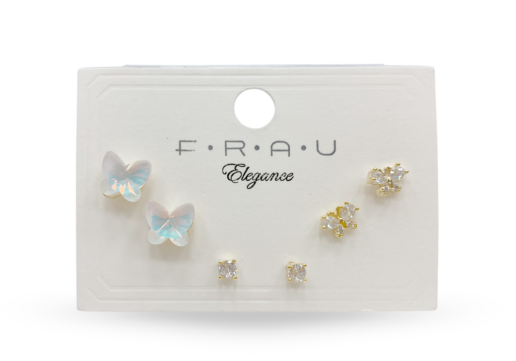 Frau Elegance Aretes de pin de 3 pares mariposas opalo dorado